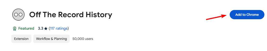- Visit the Off The Record History extension page and click Add to Chrome.