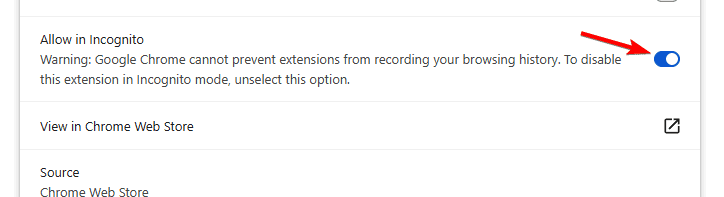 - Check Allow in Incognito.