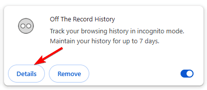 - Locate Off The Record History and click on Details.