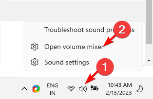 - Choose Open Volume Mixer.