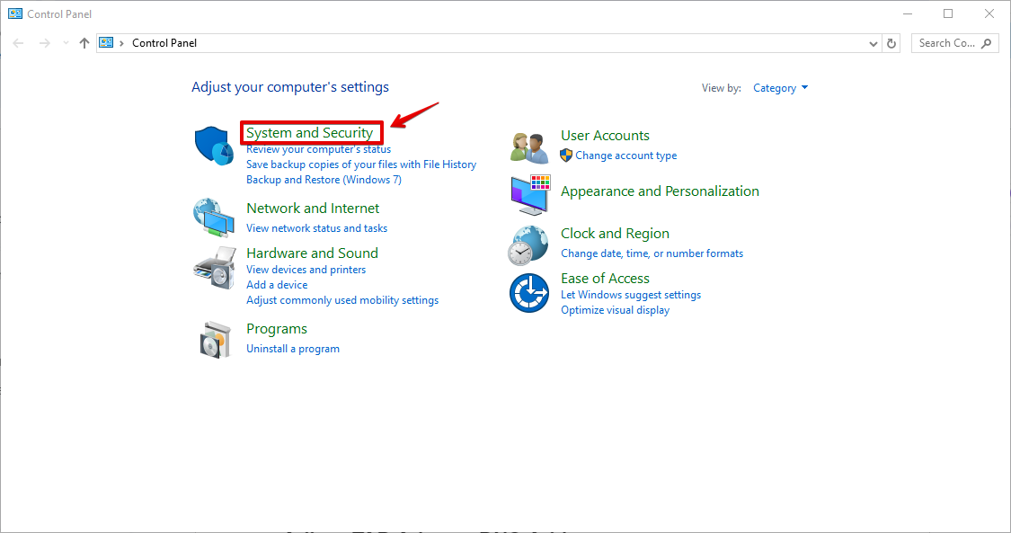 - Select “System and Security.”