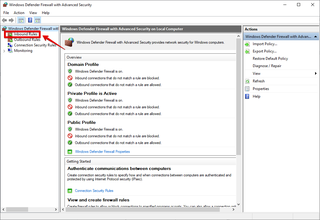 - In the window that appears, click “Inbound Rules.”