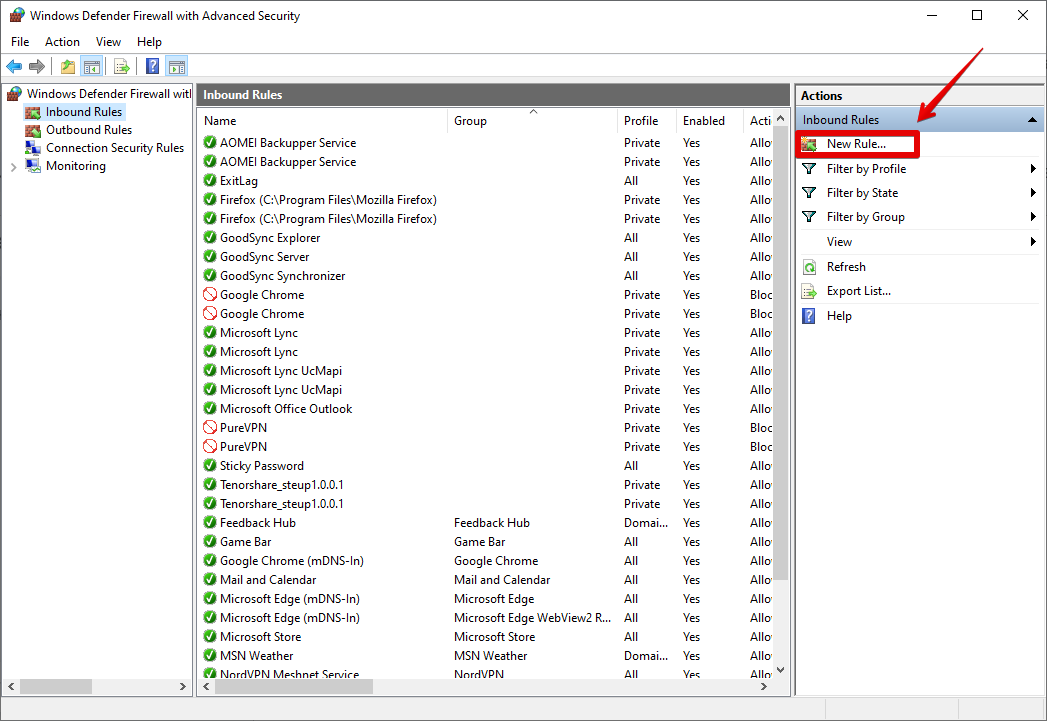 - Select “New Rule” from the right-hand pane.
