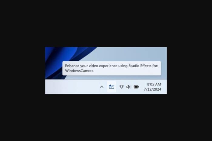 Windows Studio Effects is a new feature in Build 26120 that delivers AI-based camera and audio enhancements on devices equipped with a Neural Processing Unit (NPU). It can now be accessed in Quick Settings from the taskbar’s system tray, and an icon will appear in the system tray when using any application with a Studio Effects-enabled camera. Hovering over the icon displays a tooltip indicating which application utilizes the camera.