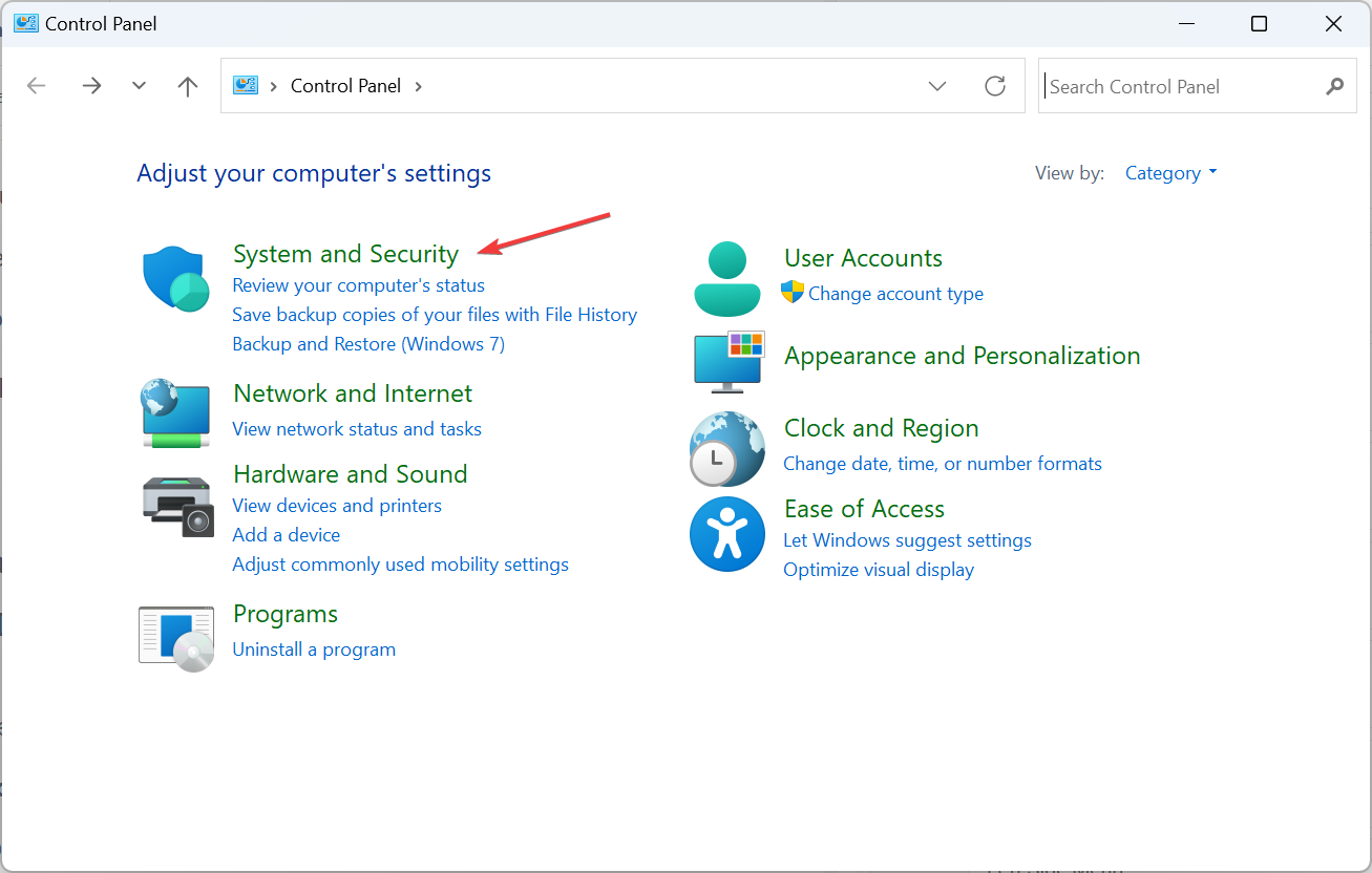 - Click on System and Security.