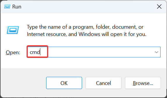 - Press Windows + R to open Run, type cmd, and hit Ctrl + Shift + Enter.