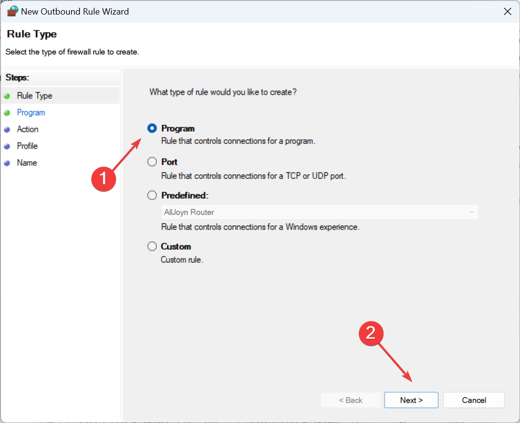 - Select Program and click Next.