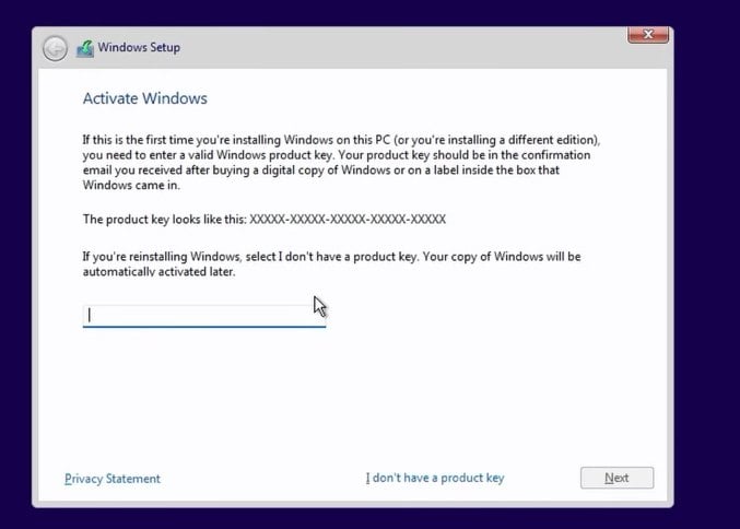 - Enter a serial if you have one on you or received it with the computer. Else select, I don’t have a product key.