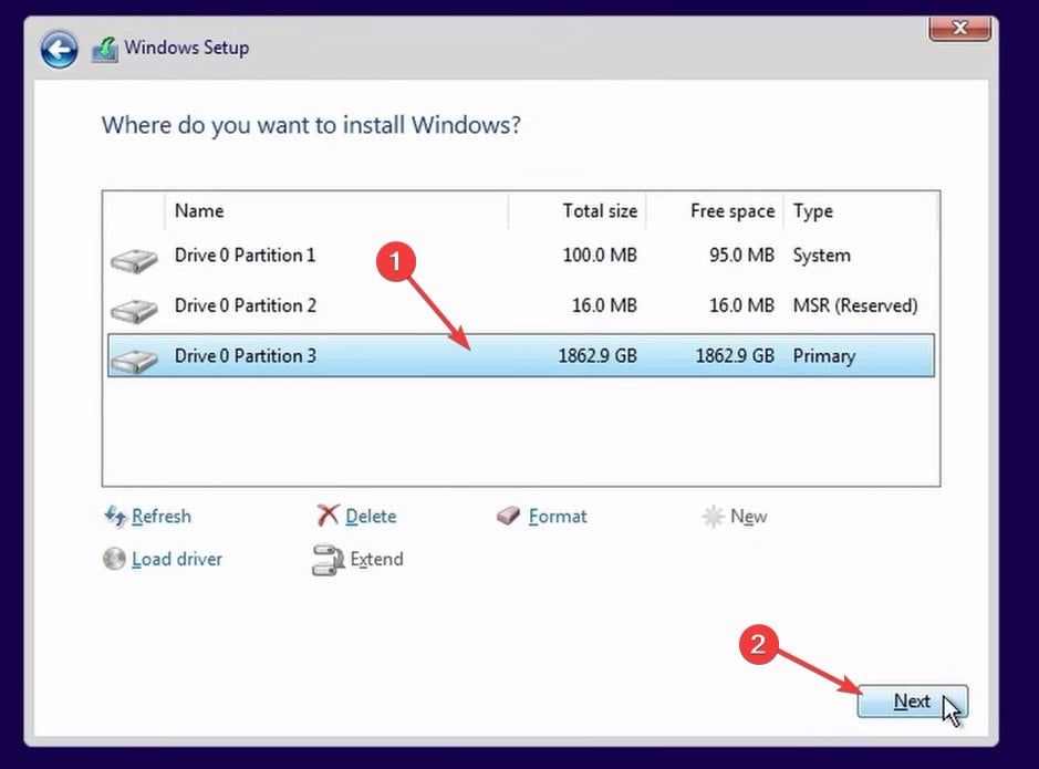- Select Custom: Install Windows only (advanced) and then follow the on-screen instructions.