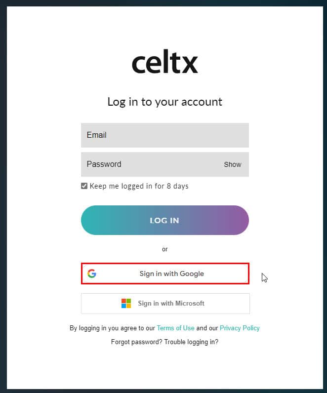 - The Celtx login screen should open.