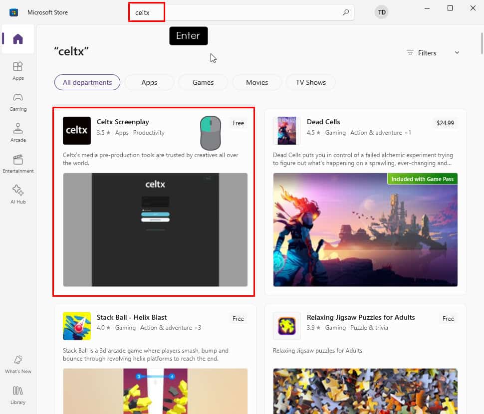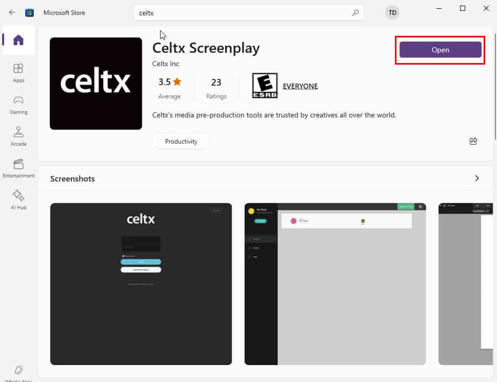 If you can’t find Celtx Screenplay in the Microsoft Store or the app won’t open or work properly, follow this workaround. Here, I’ll show you how to download the installer file from reliable online sources.