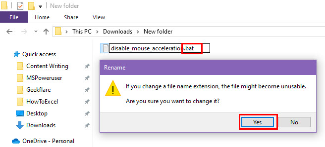 - Again, rename, and this time delete the TXT extension and replace that with the BAT extension.