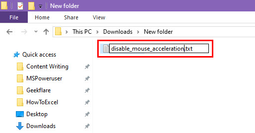 You can rename this batch file to enable_mouse_acceleration.bat and save it in Desktop for easy access. When you execute it, Windows 10 will set the MouseSpeed, MouseThreshold1, and MouseThreshold2 values back to their default settings.