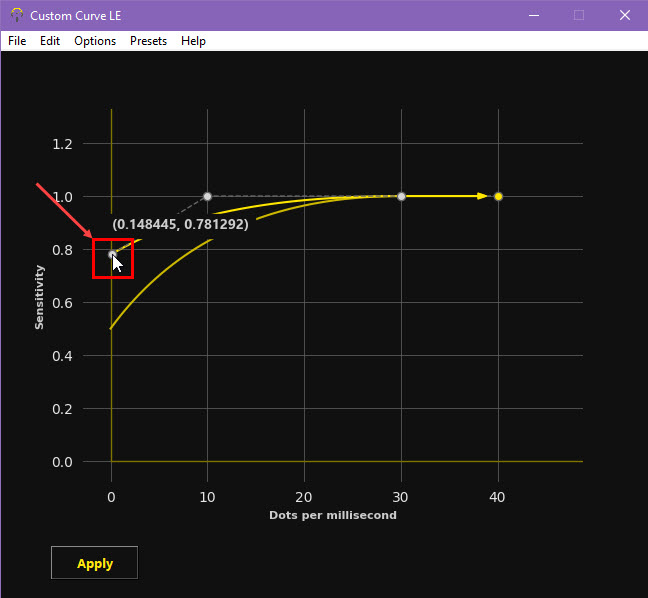 Click on the point on the Y-axis to move it up or down to increase or decrease sensitivity.