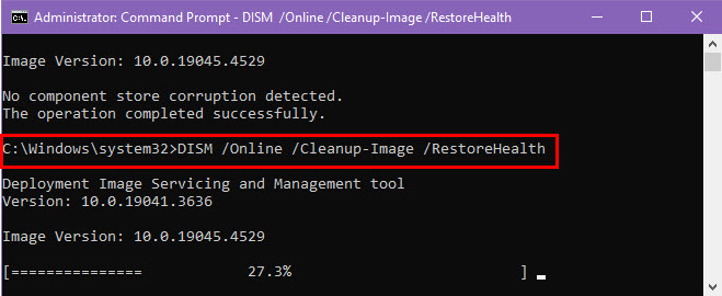 DISM /Online /Cleanup-Image /RestoreHealth