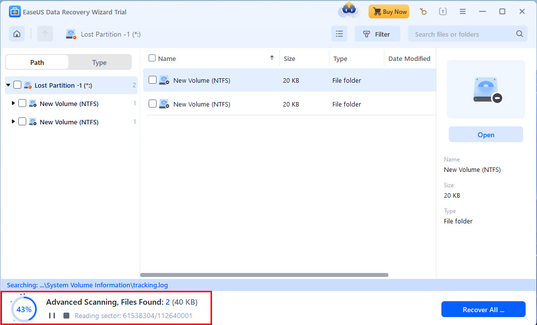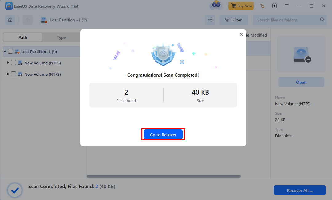 At this stage, don’t create any new files or paste different files in this newly-created partition. You’ll need to use a third-party file recovery tool to get back recoverable files of the lost partition. If you start copying files in the new partition, old files will get overwritten and might get lost forever.