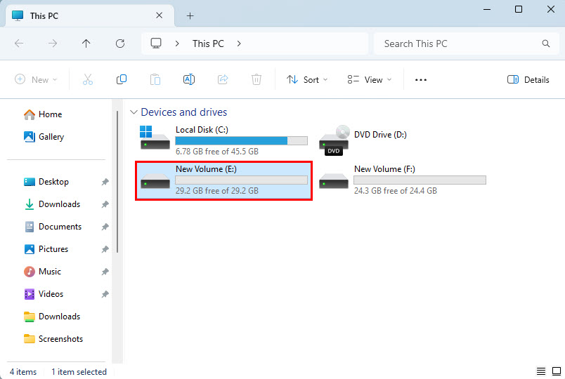 - The previously lost partition will now show up in the File Explorer tool.