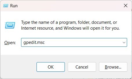 - Type gpedit.msc and press Enter to open the Group Policy Editor.